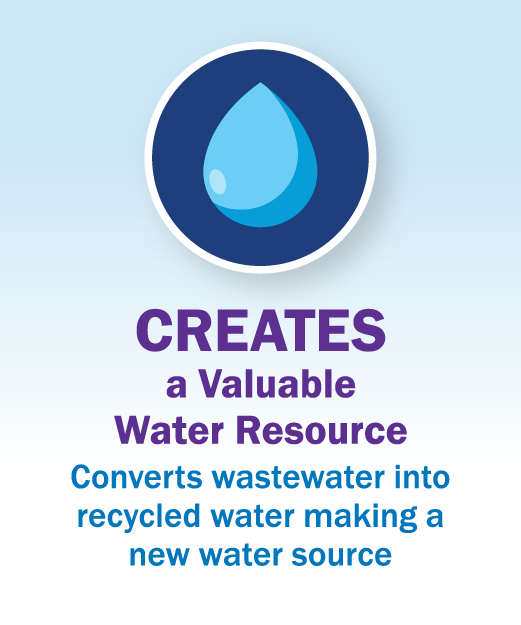 Recycled water is treated wastewater that is safe for irrigation. It is not used for drinking water but instead is transported through purple-colored pipes to select locations for limited uses. The use of purple pipes is used throughout communities to avoid potential cross-connection to drinking water pipes. Recycled water is strictly regulated and monitored by federal, state, and local governments to meet all public health and safety guidelines.